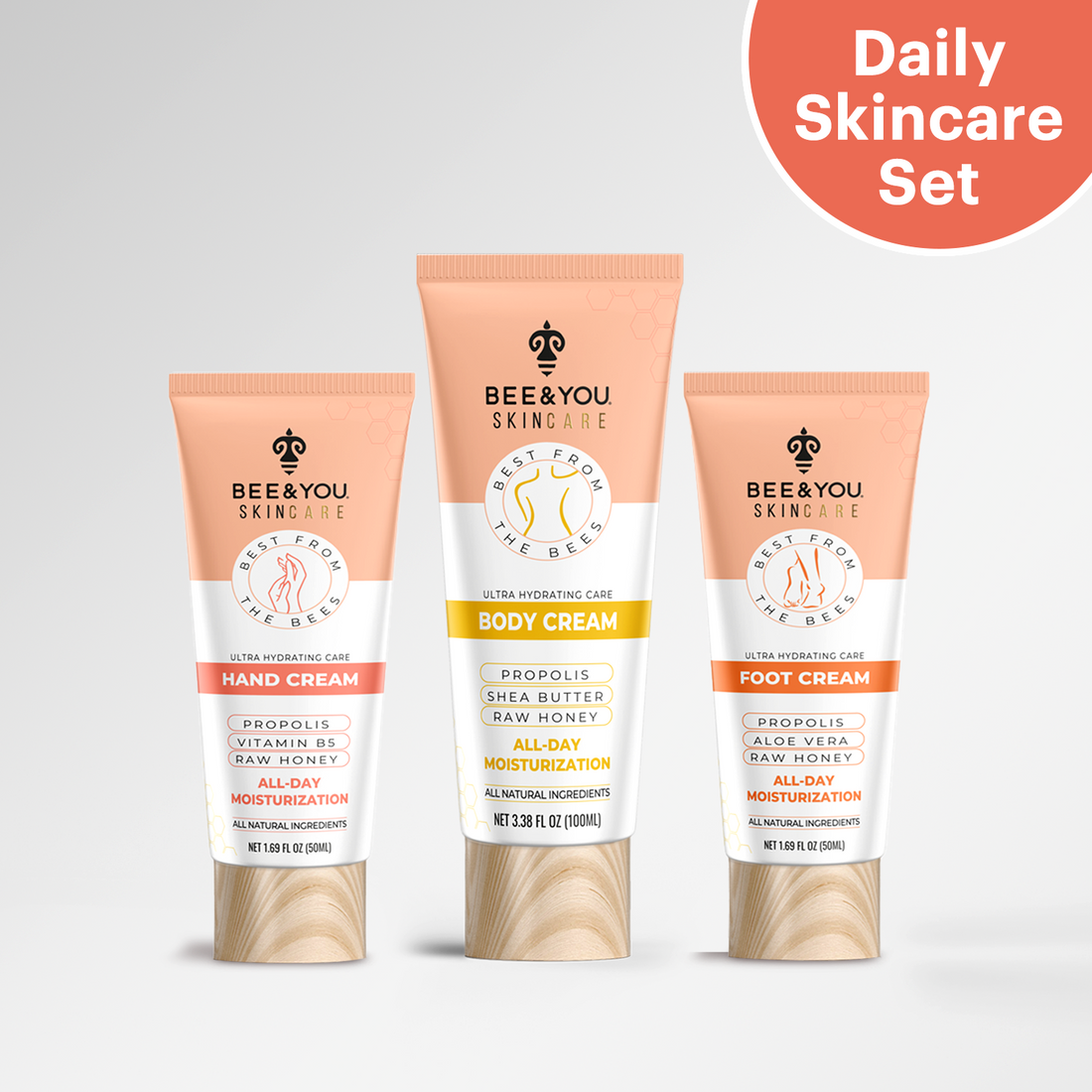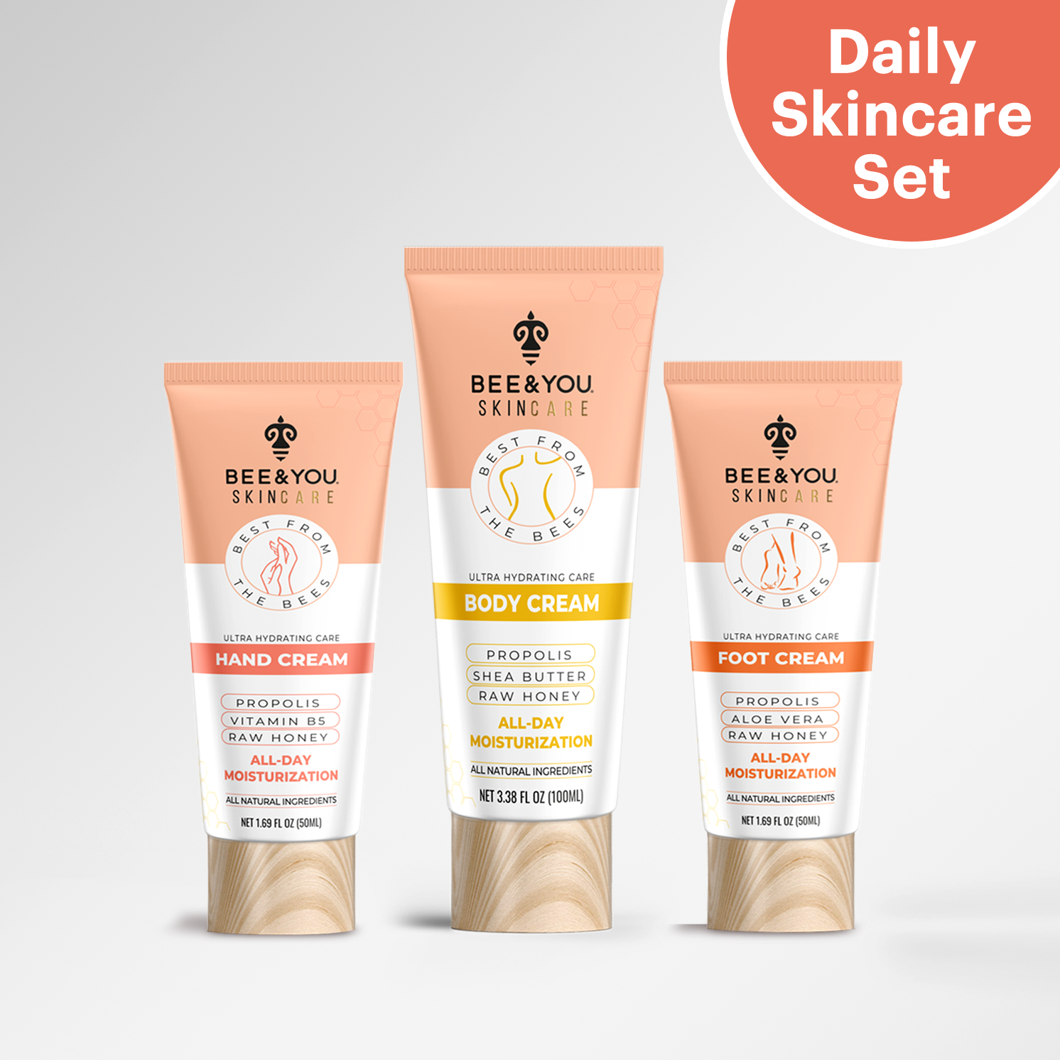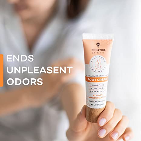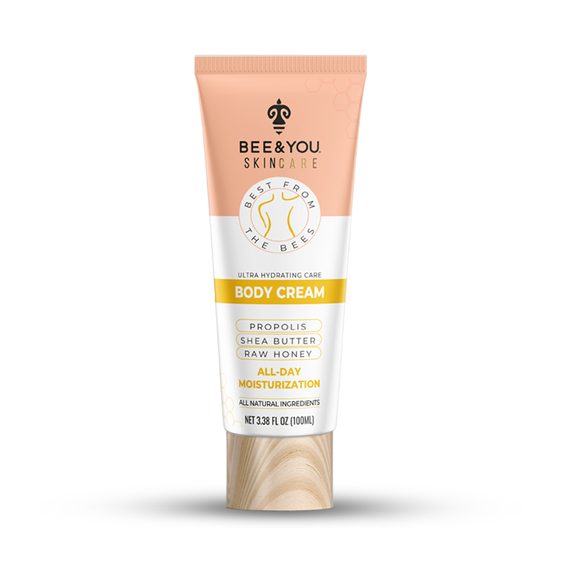 BEE&YOU Ultra feuchtigkeitsspendende Körper-, Hand- und Fußcreme wird aus anatolischem Propolis-Extrakt, rohem Honig, Sheabutter, Pflanzenextrakten und natürlichen Ölen hergestellt, die schnell einziehen, um die Haut mit Feuchtigkeit zu versorgen. Aufgrund der stark absorbierenden Eigenschaften der Inhaltsstoffe dieser Formel fettet sie nicht. Es liefert auch Vitamine, Antioxidantien, Polyphenole und Katechine an erschöpfte Haut.