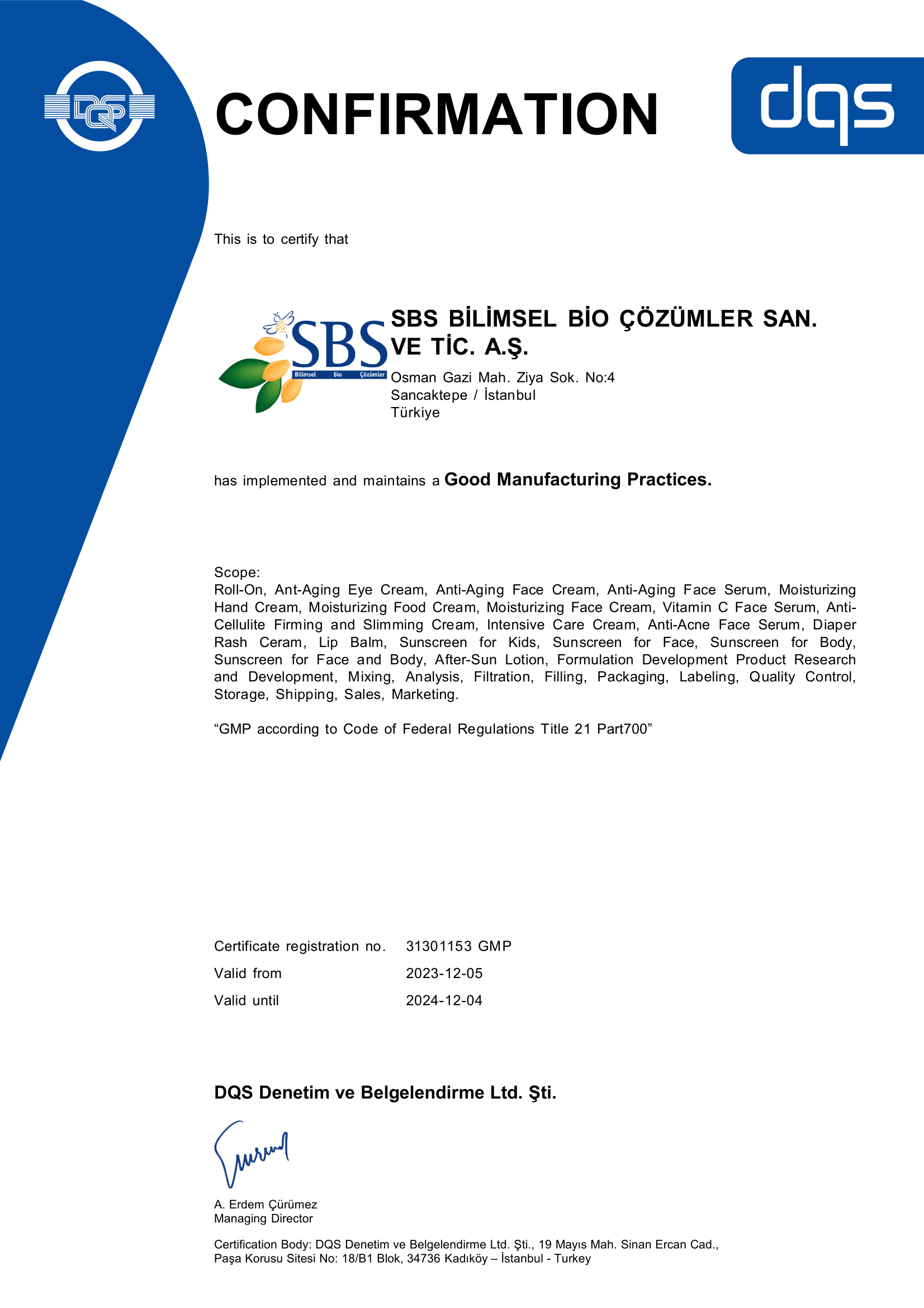 GMP Certificate 2024