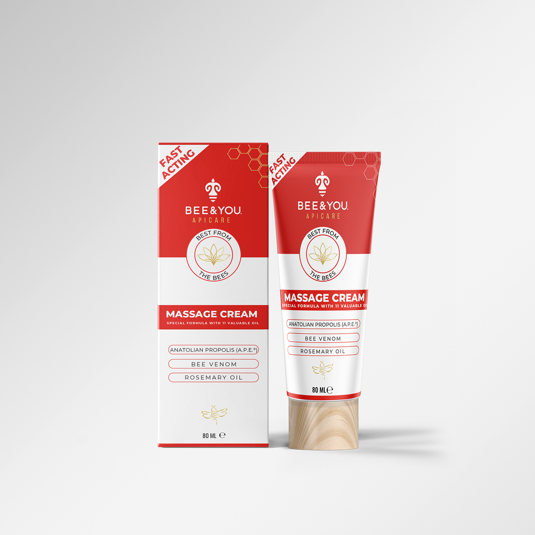 BEE&YOU APICARE Massage Cream is designed to bring the ultimate spa experience to your home, featuring a unique blend of 11 precious oils, Patented Pure Anatolian propolis Extract, and bee venom, which are powerful and natural ingredients.