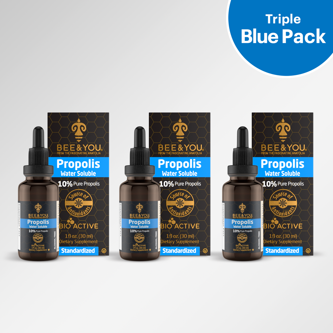 BEE&YOU Propolis wateroplosbaar extract (15%) is een alcoholvrije formulering en zit vol met antioxidanten, polyfenolen en flavonoïden en is de ultieme immuunbooster. Gemakkelijk te mengen met water en andere dranken!