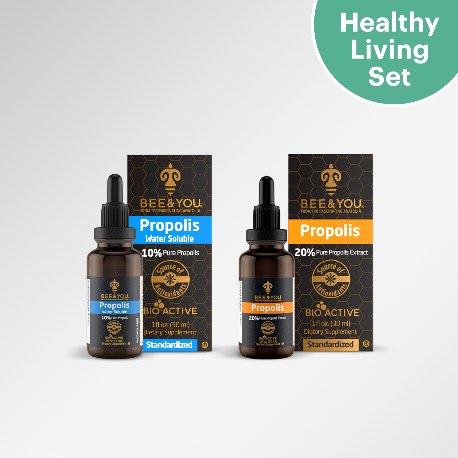 Ekstrakt BEE&YOU (20%) jest preparatem o ultrapotencji, pełnym przeciwutleniaczy, polifenoli i flawonoidów i jest najlepszym wzmacniaczem odporności. Jest to roztwór alkoholu zbożowego i nie rozpuszcza się w napojach. Można go mieszać z miodem, jogurtem lub innymi produktami spożywczymi lub można go brać prosto do ust!